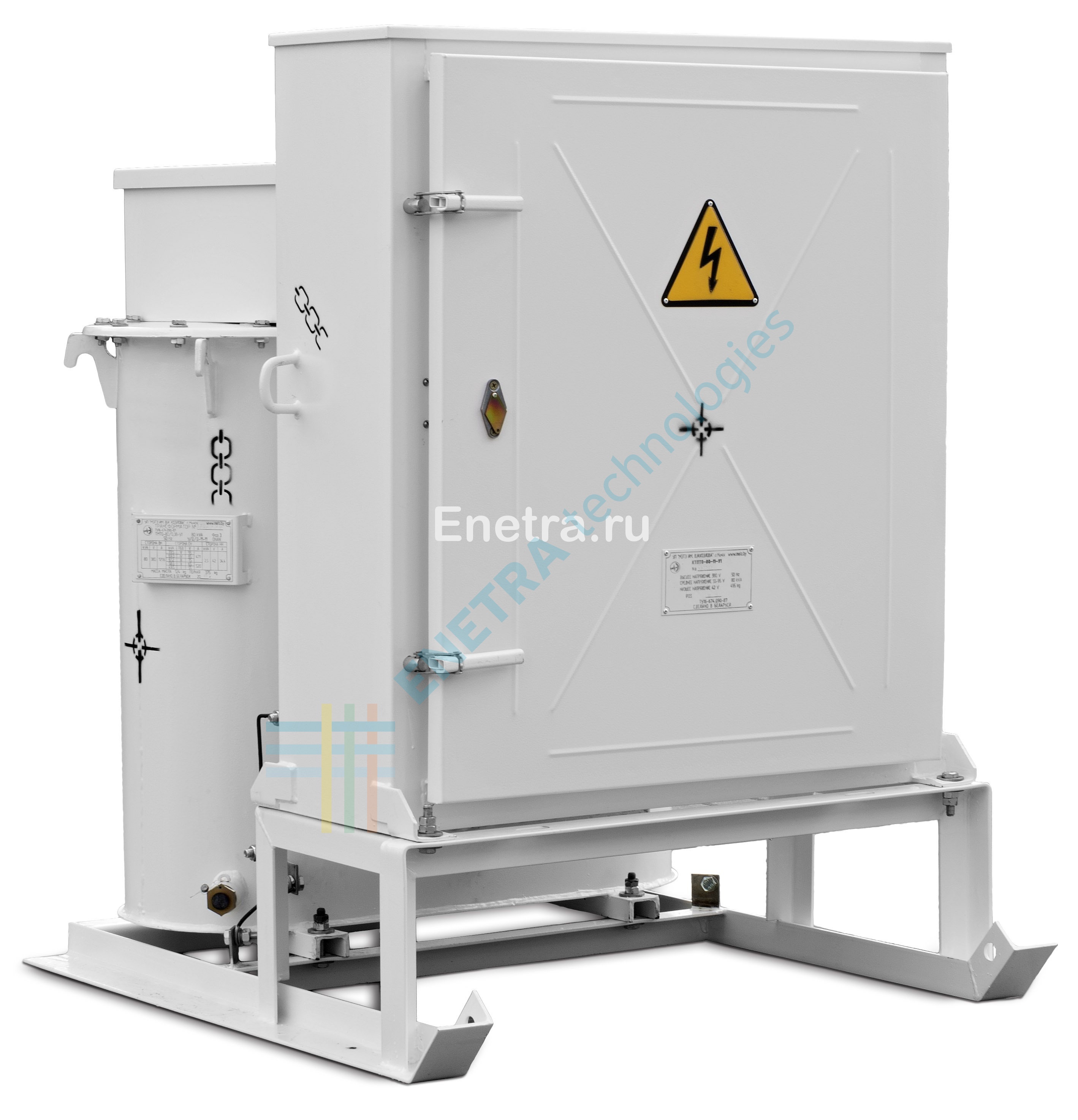Подстанция КТПТО 80 представляет собой единый металлический блок, внутри которого размещены силовой трансформатор, аппараты защиты и коммутационные устройства. Понижающий трехфазный трансформатор мощностью 80 кВА с естественным масляным охлаждением рассчитан на длительный режим работы в тяжелых строительных условиях.